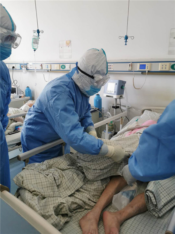当 晚9点左右,患者病情仍未明显缓解,专家组指示:积极创造条件,准备气管插管,行有创呼吸机支持。由于患者具有高度呼吸道传染性,插管麻醉师需做好充分保护;负责医务工作的医疗队员许夕海全市搜寻正压送风呼吸器;专家组进一步优化治疗方案,稳定内环境……三管齐下,患者恶化的病情势头终于被遏制住。次日凌晨1点左右,患者的血氧饱和度稳定在93%上下。考虑病情危重,治疗组仍然一丝不敢松懈,密切关注病情变化。