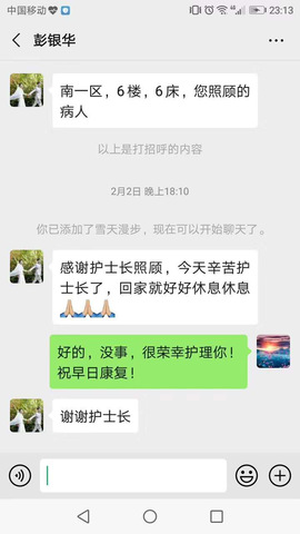 彭银华还第一时间加了凌云的微信,对她无微不至的照顾表达了感谢,即使自己病体不适,还关心她的身体,叮嘱她好好休息。凌云特别感动。