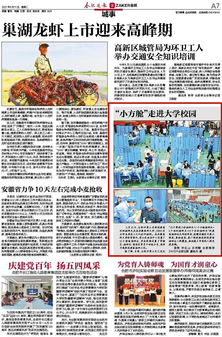 合肥晚报、市场星报:“小方舱”走进大学校园