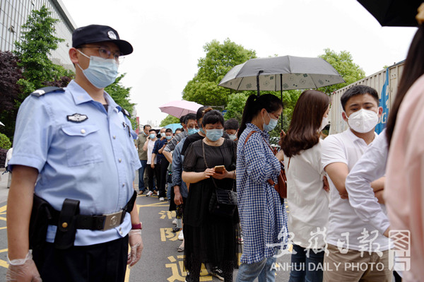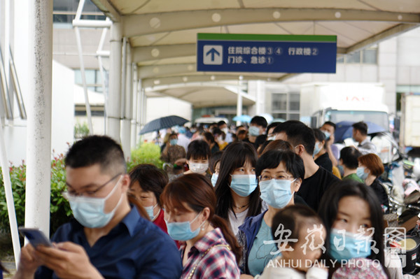 5月14日,在合肥安医大二附院,市民排队接种疫苗,现场秩序良好。