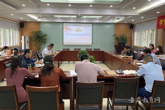 据韦泽介绍,为进一步引导学院教师提高思想政治理论课教学质量、增强理论科研水平,结合“四史”教育相关内容,由院长柳泽民主持,该院召开了改革开放精神理论研讨会。会上,学院4名教师先后发言,从改革开放精神的生成逻辑、主要内涵、时代价值、弘扬路径等角度进行深入探讨,并与参会研究生们进行了互动交流。