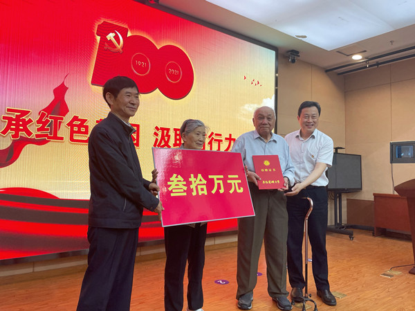 离开工作岗位后,浦老感动于党的温暖和学校的关怀,夫妻俩晚年生活幸福快乐。但两位老人心里总有遗憾,觉得离休三十年来自己没能再为社会、为学校做出贡献。党史是最好的教科书,通过学习党史,先烈们英勇作战、顽强拼搏的画面再次浮现在眼前,为感念党恩,浦老经过认真考虑,决定将积攒多年的离休金共计30万元捐赠出来,以实际行动庆祝中国共产党成立100周年。