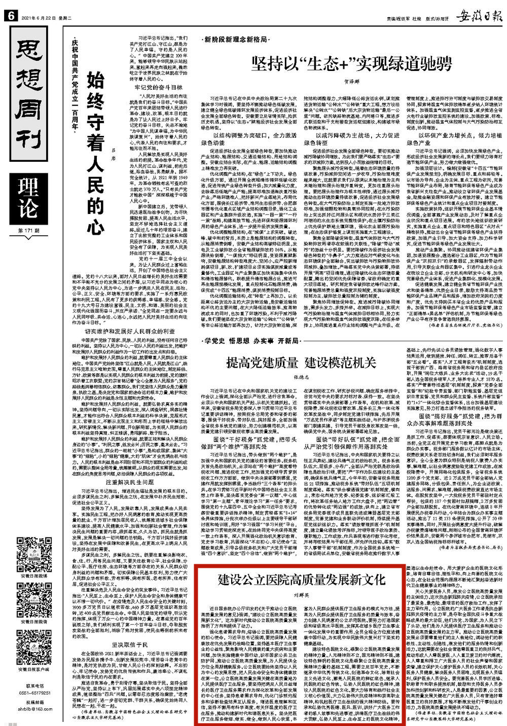 安徽日报:建设公立医院高质量发展新文化