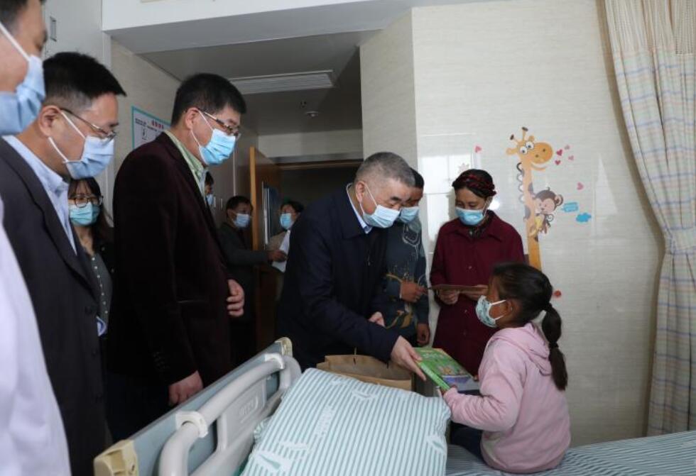 11月2日,省卫生健康委党组书记刘同柱赴安医大一附院高新院区看望慰问4名西藏山南市来皖治疗的先心病患儿,对患儿的康复表示祝贺,对医护人员的精心救护表示感谢,并与西藏患儿领队和安医大一附院及相关科室负责同志进行座谈。