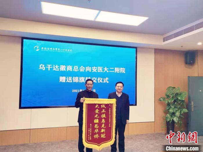 中新网合肥12月21日电 (记者 张强)“乌干达徽商总会向安医大二附院赠送锦旗转交仪式”21日在安徽合肥举行。安徽省侨联转交旅乌干达侨胞赠送给安医大二附院和该院郑凌医生的锦旗。