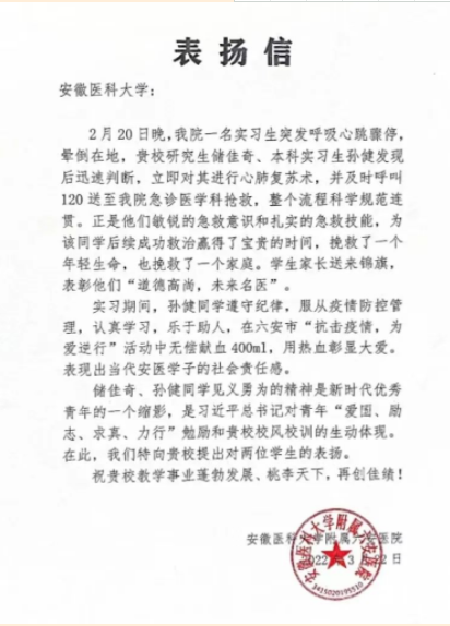 安青网:呼吸心跳骤停 一封表扬信揭开了一场生死急救