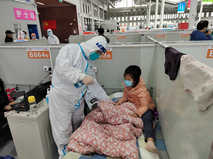 方舱里的患者一批进一批出,其中也有一些小朋友患者。初步统计,从8岁到16岁的孩子大约有20位,孩子们虽然有家人陪同,但队员们都非常关注他们的学习情况。一开始巡视舱位的时候,会叮嘱他们要少玩手机多学习,后来为了给孩子们在舱内尽可能的创造更好的学习环境,我们搬来一些桌椅充当临时课桌椅,还设立了“爱心小超市”,孩子们可以用完成的作业或者创作的作品来兑换小零食。