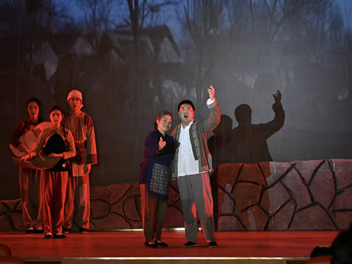 歌剧《向前》以点带面地描绘了淮海战役期间男女老幼齐上阵、家家户户支前忙的生动画卷,还原了其壮观场面。该剧深入挖掘了皖北民歌和地方戏曲等“非遗元素,在唱腔和合唱编配中融入了淮北花鼓戏、泗州戏、淮北梆子戏等戏曲的艺术特色,以更加新颖、现代的艺术形式展现了中华优秀传统文化。演出生动精彩,赢得现场师生的热烈掌声。