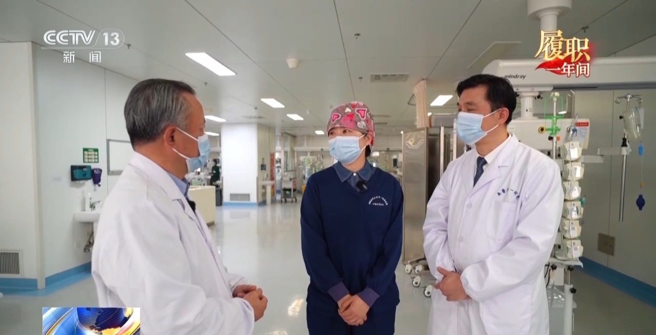 翁建平在重症监护病房走访调研时,71岁的患者陈爱荣刚完成人工心脏手术。由于以前安徽省做不了此类手术,老人受限于经济压力和身体情况,迟迟没有做手术,如今终于体验到了“大病不出省”的便利。