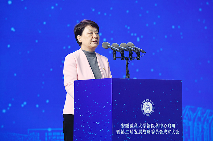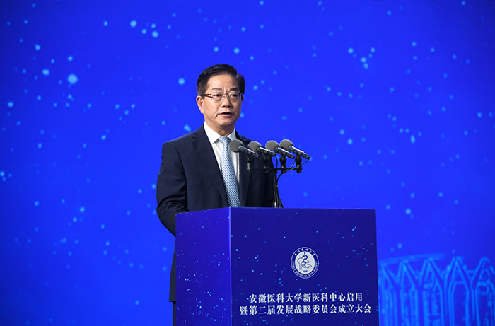 安徽省人大常委会副主任王翠凤,中国工程院院士、上海交通大学副校长范先群,省委教育工委书记、省教育厅厅长钱桂仑,合肥市委副书记、市长罗云峰,省医疗保障局党组书记、局长吴振宇,安徽省引江济淮集团有限公司党委副书记、总经理郭浩,省人民政府驻上海办事处副主任李秋淮,省发展改革委总工程师王焱,肥西县委副书记、县长王新华,省公益性项目建设管理中心主任刘青松,校党委书记王琦,校长翁建平,安徽省政协教科卫体委员会副主任、原校领导顾家山、曹云霞等共同见证。学校全体领导班子成员和原副校长肖圣龙出席活动。