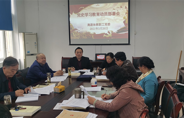 3月26日下午,离退休教职工党委召开党史学习教育动员部署会议,离退休教职工党委书记谢宜鹏主持会议。