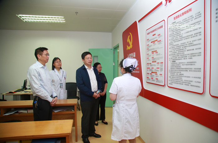 校党史学习教育领导小组成员等陪同调研。该院在院领导、党支部书记、职能部门负责人、科主任、护士长及不值班职工共同聆听了宣讲报告。(第四附属医院)