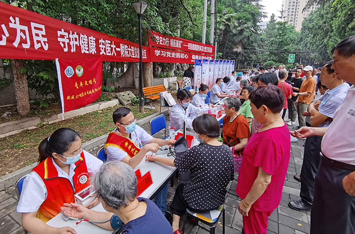 在合肥市、阜阳市、宿州市、芜湖市、安庆市、亳州市、滁州市、六安市等地,学校13所直属附属医院同时开展“学史力行,精医康民”----安医健康服务体系大型义诊活动,近300名专家免费给居民提供问诊、用药咨询;血糖检测、血压测量;健康教育;胸痛、卒中急救知识宣传等医疗服务。涉及口腔科、皮肤性病科、心胸外科、眼科、骨科、妇产科、耳鼻咽喉-头颈外科、泌尿外科、肾脏内科、肿瘤科、血液内科、肝病科/感染性疾病科、心血管内科、康复运动医学科、儿科、神经内科、消化内科、内分泌科、风湿免疫科、呼吸与危重症医学科,药学部(用药咨询)等众多学科。