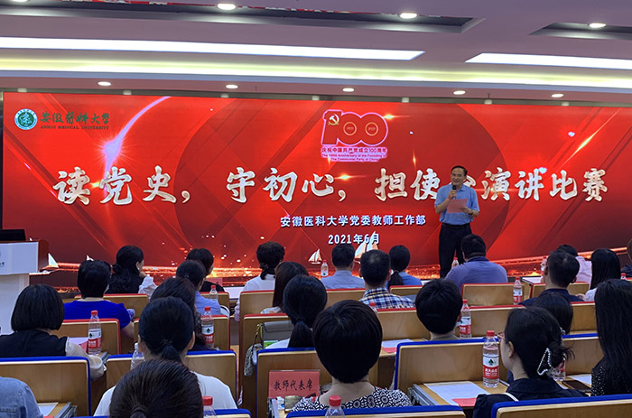 各学院和附属医院共26位选手参加本次比赛。比赛中,选手们围绕党的百年历程和“读党史、守初心、担使命”主题,或结合工作岗位中的深刻体会,或讲述抗击新冠肺炎疫情期间身边同事守初心、担使命的感人事迹,还有的选手结合学院95年的发展变迁历史,深情讲述了安医精神的内涵和根植于安医人心中的初心使命。参赛选手们演讲主题鲜明,饱含真挚情感,从不同角度、不同方位诠释了新时代教师、医护人员通过党史学习教育,对初心使命的深刻理解。