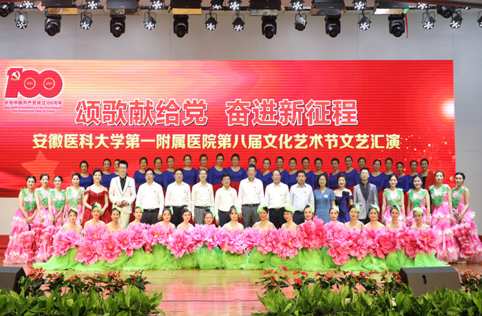 表彰大会结束后,该院举行第八届文化艺术节文艺汇演。各党总支、协会精心选送12个节目,该院职工用饱含深情的歌声、朗诵和舞蹈,为党和祖国献上最诚挚的祝愿,展现了安医人在新时代坚定不移听党话、矢志不渝跟党走,为实现第二个百年奋斗目标团结一心、开拓进取,守护安徽人民健康和引领卫生事业发展新篇章的信心和决心。