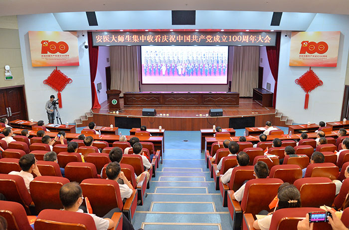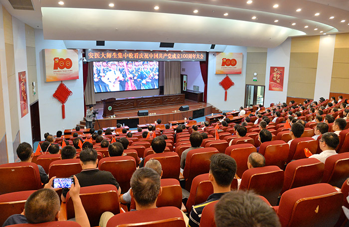 在这个十分重大而庄严的日子,中国共产党迎来百岁华诞。随着庄严的国歌声响起,在校校领导顾家山、曹云霞、刘群英、余永强、梁朝朝、吕雄文、黄新美和全校师生医护员工代表通过实况直播,在校图书馆第一报告厅内共同见证激动人心的辉煌时刻。副校长肖圣龙在中共安徽省委党校学习并收看了庆祝大会盛况。雄壮的乐曲声中,全体师生医护人员的骄傲之情油然而生,全体共产党员更是充满自豪之情。习近平总书记在庆祝中国共产党成立100周年大会上的重要讲话引发我校师生医护员工热烈反响。