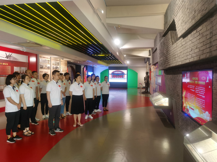 通过讲解员详细的讲解,师生党员充分感受到革命先辈无私无畏的革命精神和高尚的爱国情操,深切体会到革命先辈创业的艰辛,更加坚定党性是共产党人的立身之本。正处于建党百年和青春年华的新一代共产党员们,理应肩负起自己的责任,将党性修养作为终身必修课,为中华民族的伟大复兴贡献自己的力量。参观结束后,黄朝晖带领全体师生党员在党旗下庄严宣誓,重温入党誓词,牢记党员使命,进一步增强党员的责任感、光荣感和使命感。