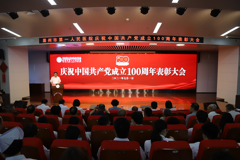 7月1日下午,在喜迎中国共产党成立100周年的喜庆氛围中,附属滁州医院召开庆祝中国共产党成立100周年表彰大会。院党委班子成员出席会议,“光荣在党50年”老党员代表、离退休党支部书记、全院中层干部、全体在职党员460余人参加会议。