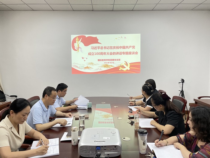 7月7日下午,国际教育学院直属党支部召开专题座谈会,学习习近平总书记在庆祝中国共产党成立一百周年大会上的重要讲话精神。会上还学习了习近平总书记关于安全生产的重要论述,并观看了专题片《生命重于泰山》。会议由该院直属党支部书记黄华兴主持。