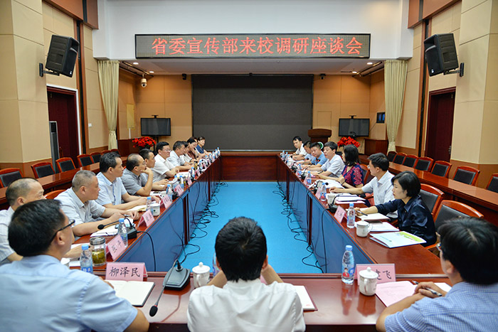 9月8日下午,省委宣传部副部长陈韶光率思想政治工作处和意识形态工作处相关同志来我校调研。校党委书记顾家山、副校长肖圣龙陪同。