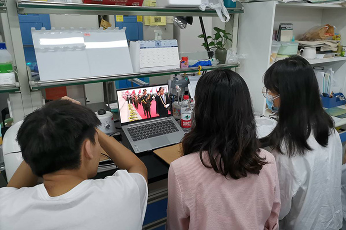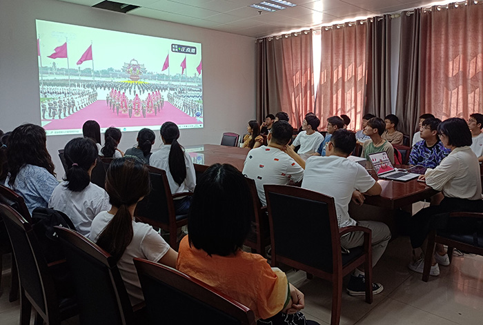 学校广大师生分别在各单位、各学院组织下,在会议室、教室、实验室、宿舍等地收看直播,共同缅怀先烈,汲取奋进力量。