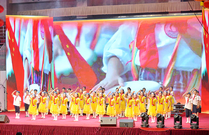 附属小学合唱团一曲情景合唱《我们是共产主义接班人》拉开了比赛序幕。