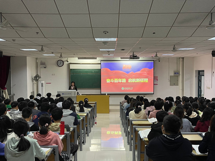 10月20日晚,校长曹云霞在知行楼B11201教室为2021级本科生讲授了题为《奋斗百年路 启航新征程》的“形势与政策”课。