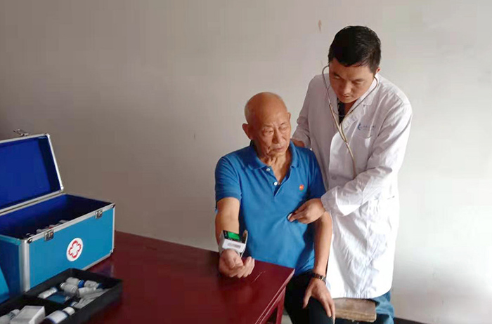 原来,王大爷患有严重的糖尿病、高血压,子女常年在外打工,日常看病十分不便。张治业驻村后不久,在给王大爷体检时发现,其空腹血糖25mmol/l,血压165/98mmhg,情绪很不稳定,烦躁,失眠,并伴有轻生念头。为此,张治业先给予对症治疗,定期到家为王大爷诊治,时不时还会同其聊聊天,在唠家常的过程中,不断对老人进行心理疏导。慢慢地,老人精神状态恢复了,血压血糖也逐步稳定,生存质量明显提高。两年的驻村时间,张治业已记不清为老人诊治过多少次,但看到老人重拾生活的信心后,他感觉一切努力和付出都值得。