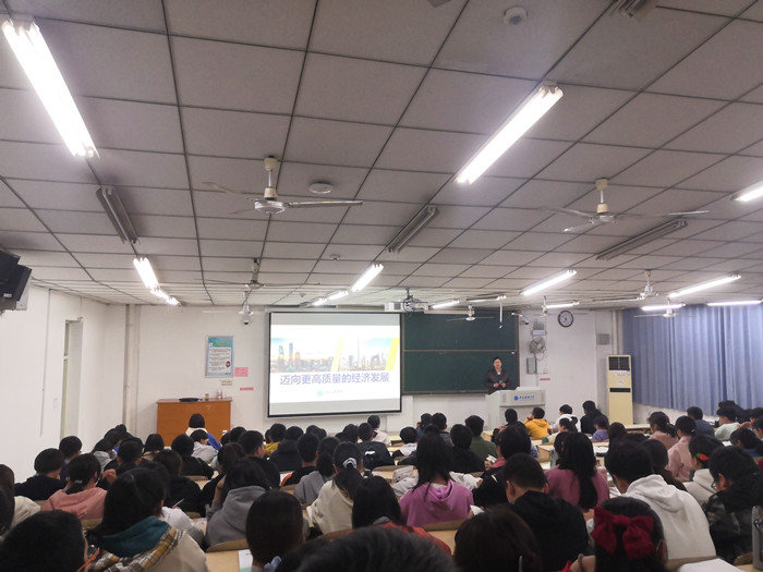 11月15日晚,校党委副书记刘群英在锡祺楼14201教室为本科生讲授了题为《迈向更高质量的经济发展》的“形势与政策”课。