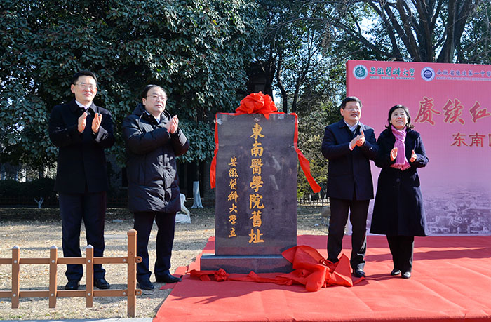 在师生代表的共同见证下,顾家山、曹云霞和怀远县委书记汪若怀、县委副书记杨亮共同为校址纪念碑揭幕。校党委副书记刘群英主持仪式。校青年学生代表诵读纪念碑碑文。