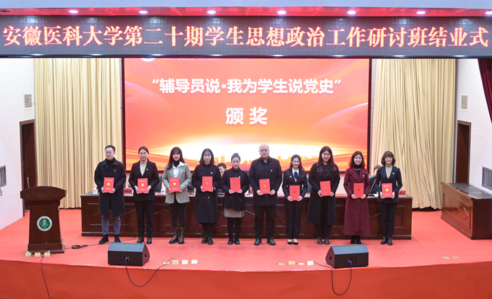 会上表彰了我校2020-2021学年“十佳辅导员”和学校辅导员宣讲团“我为学生说党史”获奖代表。