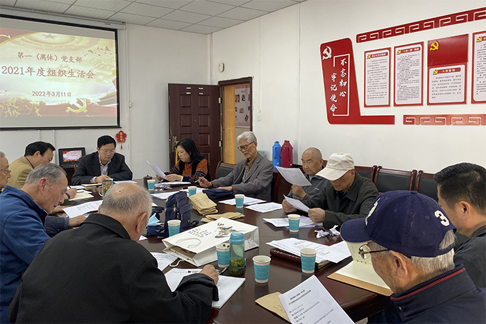会上,离休党支部书记报告了离休党支部一年来工作情况,特别是党史学习教育开展情况,通报了党支部委员会对照检视问题。考虑到老党员们年事已高,大都眼力不好,离休支部对老党员是否必须填写党员民主评议登记表没有作硬性要求。但参会老同志们会前认真学习文件,并认真填写党员民主评议登记表,为此次组织生活会作了充分准备。支部党员联系个人思想、学习、工作、生活实际,依次进行检视剖析,认真开展了批评与自我批评。
