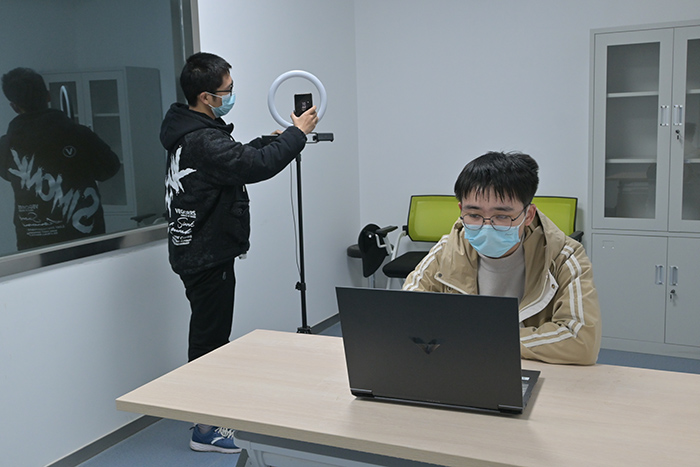 此外,各学院也第一时间腾出办公室、党员活动室、会议室等场所作为“线上直播间”,安排专人值班,并针对学生不同的面试日程需求建立了预约制度。有的学院还贴心地准备了专业的补光灯、手机支架等设备,以求为学生提供更加温馨、舒适的面试环境。