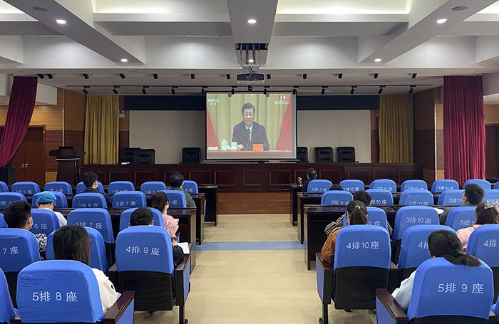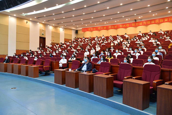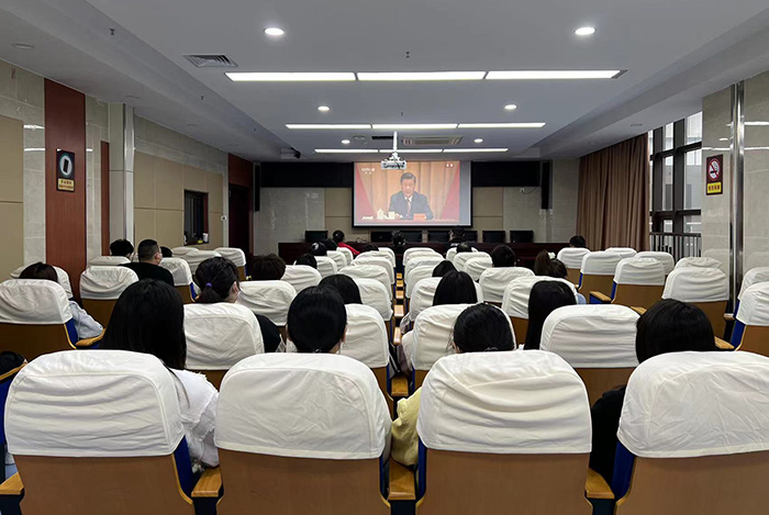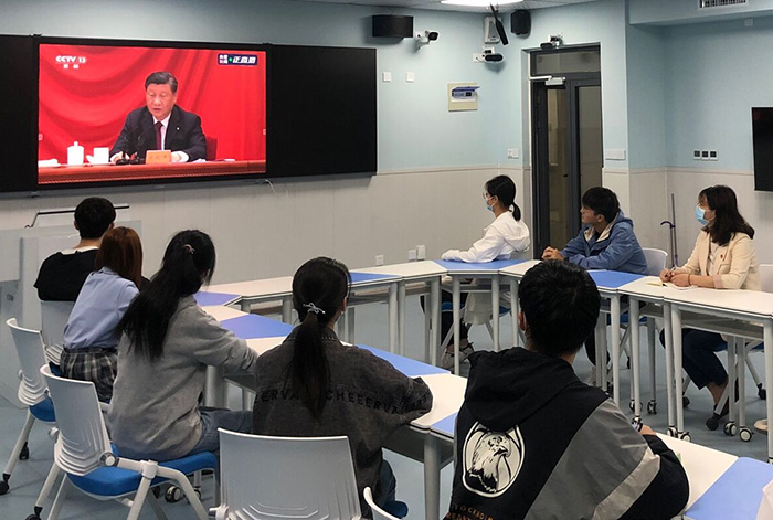 5月10日上午10时, 庆祝中国共产主义青年团成立100周年大会在北京人民大会堂隆重举行。我校师生医护员工分别在报告厅、会议室、教室、实验室、宿舍等地收听收看大会直播。