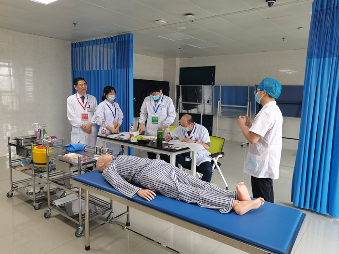 为保障水平测试期间疫情防控工作,切实保障考生生命安全、身体健康和水平测试平稳有序,学校多次召开水平测试工作协调会和工作推进会,对考试场地、考试流程、考官培训、防疫措施、保密情况等考前筹备工作进行了充分讨论。考试前,通过模拟测试,考官、培训标准化病人(SP)和体检模特培训及工作人员考务培训会,强调考风考纪,并与考官、考务工作人员和所有标准化病人签订了考试保密责任书和个人健康信息承诺书,确保考核工作公正、公平、规范、科学、有序。考试期间,考场秩序井然,各环节考试圆满完成。