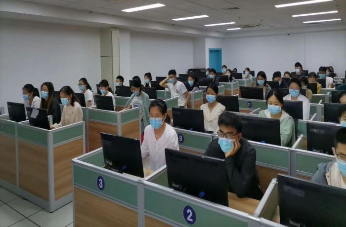 本次共有2018级临床医学(含“5+3”一体化、“5+3”一体化儿科学方向、农村免费定向医学生)专业996名学生参加测试。考试包含理论和临床实践技能两部分,理论考试为计算机化考试,分别在梅山路校区、翡翠路校区和附属巢湖医院机房同步完成;临床实践技能考试在实验教学中心和附属巢湖医院技能中心进行,主要考查病史采集、体格检查和基本技能操作,同时对沟通交流能力、人文关怀等医学职业素质进行评价。