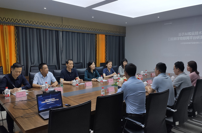 在登特菲产品展厅,公司总经理黄开先向曹云霞一行重点介绍了登特菲口腔生态设备矩阵终端、菲林之家智慧诊所医院解决方案,现场详解了口腔锥形束CT设备、牙周探针、3D打印等设备技术优势及临床应用理念。座谈中,他就公司的核心技术、产业布局及发展战略作了介绍,并希望校企双方围绕就业见习,在医工融合、协同科研攻关、技术云端服务等方面展开深度交流合作。