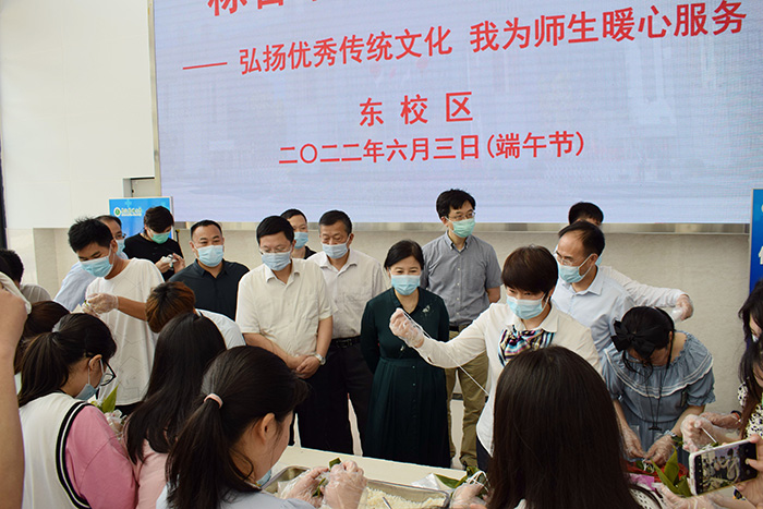 在东校区,校领导参加了正在举办的“弘扬优秀传统文化,我为师生暖心服务”主题活动,并代表学校向广大师生表达节日问候,送上了美好祝福,希望大家积极传承和弘扬中华优秀传统文化,增强文化自信,厚植家国情怀,以实际行动和优异成绩为学校新时代跨越式发展贡献力量。