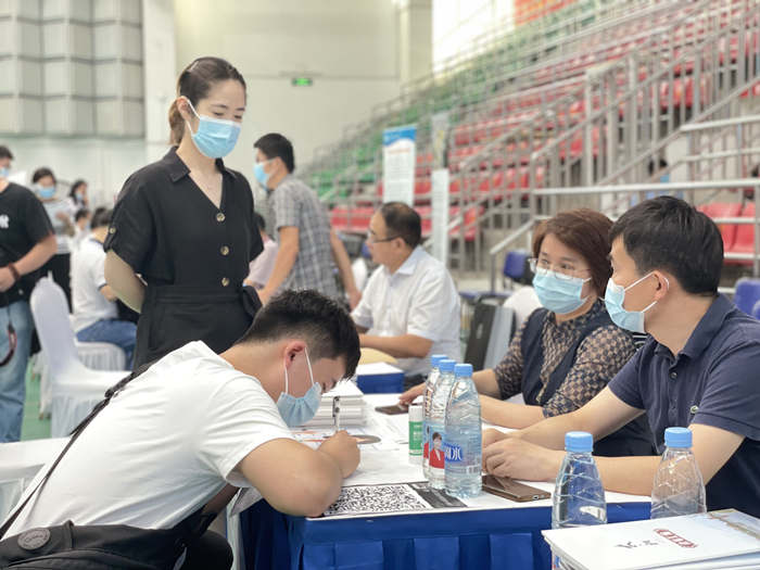 招聘会现场,同学们积极投递简历,并就工作内容、岗位待遇、未来发展等关心的问题与用人单位深入交流。2022届太和籍毕业生小陈激动地表示:“看到老家来的单位倍感亲切,学校一直号召我们留皖就业,我自己也立志回家乡就业,用所学知识服务家乡医疗卫生事业的发展。”当天下午,部分用人单位同步进行了专场录用面试,77名毕业生签订了意向协议。