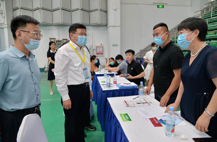 6月15日,我校举办阜阳市卫健委就业专场招聘,抓住毕业生离校的关键期,深入推进2022届毕业生就业“百日冲刺”。校党委书记顾家山、党委副书记刘群英访企拓岗,深入招聘会现场指导工作。副校长余永强在招聘会前会见了阜阳市卫健委领导一行。