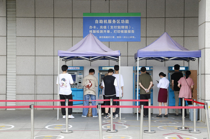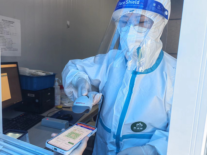 为简化核酸检测流程,减少人员聚集,该院在原有自助机开单、线上互联网医院开单的基础上,已全面上线扫描安康码开单服务。需要核酸检测的市民可直接用手机打开安康码,由窗口工作人员扫码开单,市民再通过微信或支付宝付费,整个过程一气呵成,方便快捷。为避免高峰期人员聚集,该院已将核酸检测点自助机重新摆放位置,并在核酸检测点设置七条隔离带,划好一米线,同时每天增派一名安保人员现场维持秩序。