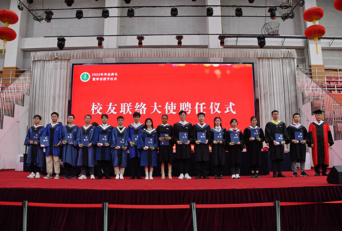 校党委副书记刘群英主持典礼仪式,校党委常委、副校长余永强宣读有关2022届毕业生毕业、授予学位有关文件,校党委常委、副校长梁朝朝为毕业生校友联络大使颁发聘书和纪念章,校党委常委、副校长肖圣龙、吕雄文,校党委常委、校纪委书记、省监委驻校监察专员黄新美,以及校学位委员会成员出席典礼并为毕业生代表拨穗正冠。