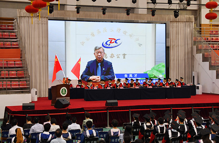 “希望你们能永远铭记母校的教诲,在未来属于自己的领域内发光发热、挥斥方遒!”典礼仪式上,我校1987届杰出校友、临床疫苗学专家、江苏省疾病预防控制中心副主任、世界卫生组织(WHO)新冠疫苗优先次序工作组专家朱凤才教授通过视频录播的方式为同学们送上毕业寄语。