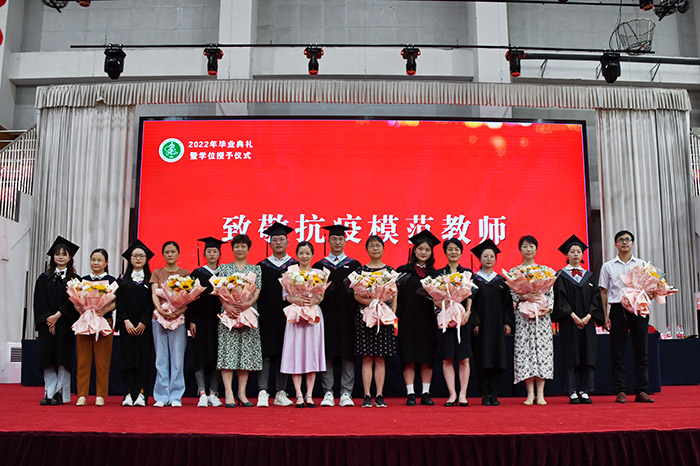 今年上半年,我校先后派出5批400余名医护人员驰援上海,为了向他们表达敬意,今年的毕业典礼“致敬抗疫模范教师”环节,特别邀请了8位援沪抗疫模范教师代表出席并接受毕业生献花。学校号召广大毕业生致敬楷模、学习榜样,在人生新的征程上用青春奉献祖国,用大爱肩负重任。