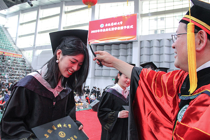我校2022届3174名本科生、1536名研究生、60名留学生在现场和“云端”线上参加了毕业典礼。学校相关职能部门和学院负责人、毕业班辅导员现场参加了典礼。(文/校党政办 查玮 图/新闻中心 殷泽文 王晶晶)
