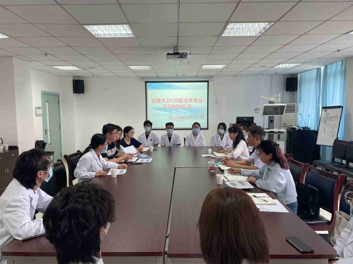 二附院相关职能部门和科室负责人,法学院见习年级辅导员及部分2020级见习生代表参加座谈。(法学院 沈春晗)