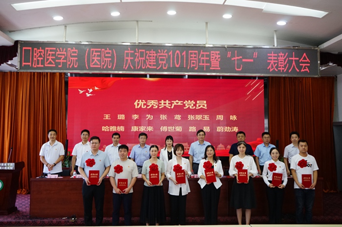 7月1日下午,口腔医学院(附属口腔医院)在健行楼六楼会议室召开庆祝建党101周年暨“七一”表彰大会。该院党委书记王润玲讲话,院党委副书记、院长何家才主持会议,院党委副书记陈然宣读表彰文件,院领导班子成员出席会议。