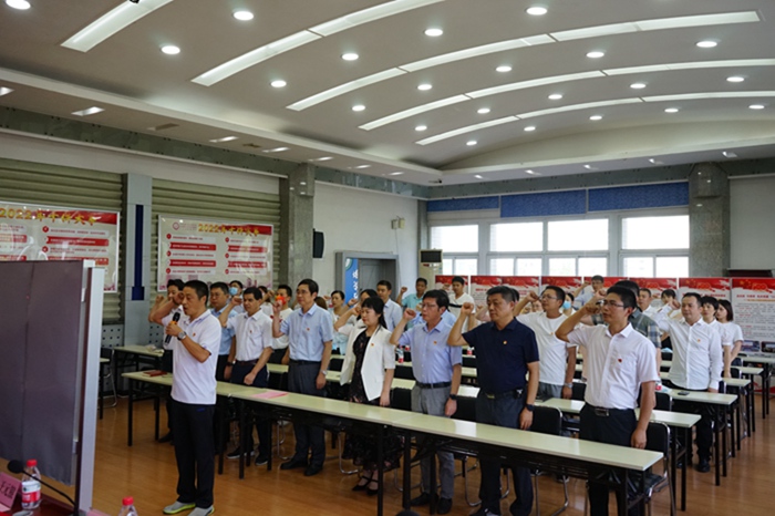 会上,该院副处级组织员吴卫带领所有参会党员重温入党誓词,并带领新党员进行入党宣誓。
