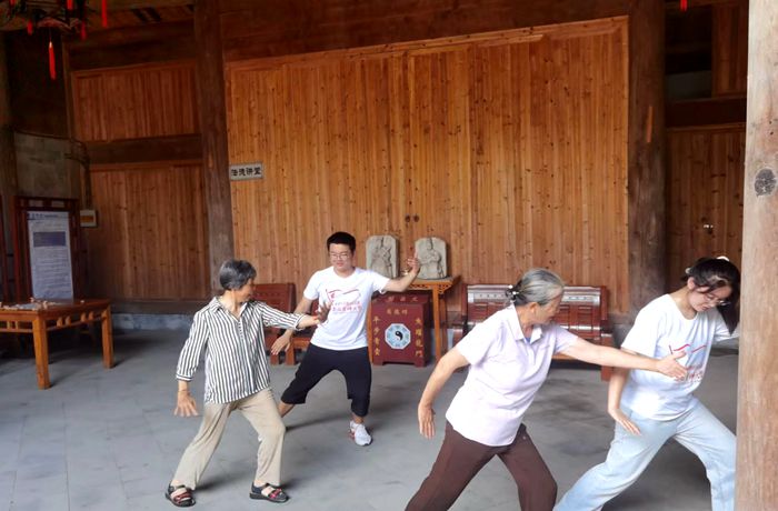 该团队还结合自身专业优势,关爱村民健康,聚焦提高村民健康意识和自我保健能力,将健康送到村民家门口。团队为村民进行义诊,提供血压、血糖的测量和慢性病的知识普及,并开展了二十四式简化太极拳和五禽戏的现场教学,希望引导老年人群通过此类方式强身健体、愉悦身心。针对地方特点,该团队还为当地儿童生动地介绍了防溺水相关注意事项,并科普了中暑的症状、防治措施和海姆利克急救法,通过互动问答的方式增强儿童的安全意识。