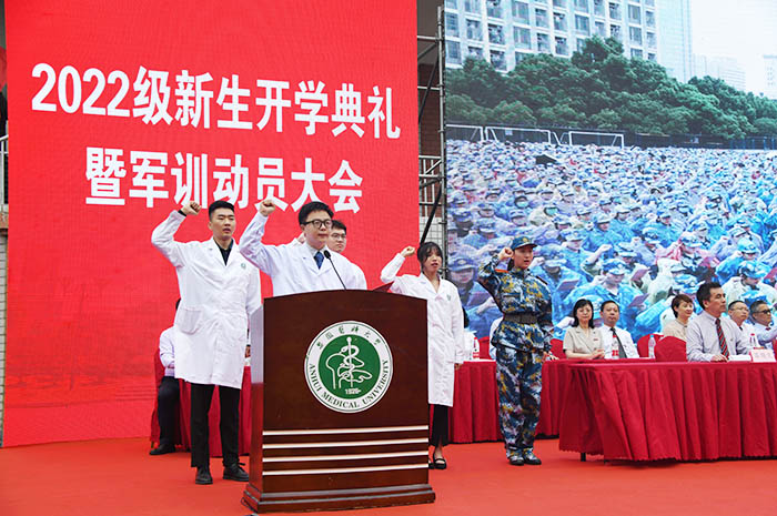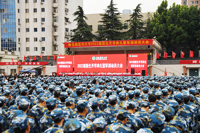 9月14日上午,我校2022级新生开学典礼暨军训动员大会在梅山路校区体育场隆重举行,6900余名本科生和研究生新生现场参加典礼并庄严宣誓,为国家卫生健康事业发展和人民健康奋斗终身。